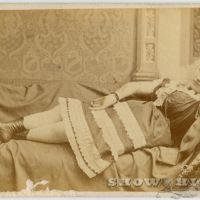 Interesting and unusual horizontal portrait of an unidentified woman with albinism, laying on a cou…… Become a member to read more!