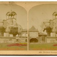 Handcolored Stereoview. One of the best images extant of the Elephant showing the entrance and the…… Become a member to read more!