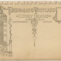 Beautifully designed and drawn postcard back displaying Dreamland Tower with Art Noveau flourishes…… Become a member to read more!