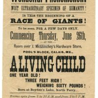 A handbill advertising an interesting small-town exhibit of a child who is touted as “The Beg…… Become a member to read more!
