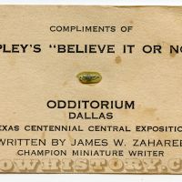 James W. Zaharee Souvenir Rice Writer Card, 1936