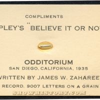 James W. Zaharee Souvenir Rice Writing From Ripley’s Odditorium, 1935