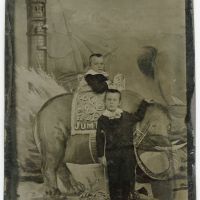 A Sixth Plate re-photographed tintype taken in a seaside(?) studio featuring two small boys in matc…… Become a member to read more!
