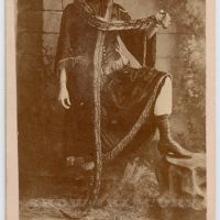 Dramatic carte de visite image of an attractive woman in a fringed dress, leather boots holding a l…… Become a member to read more!