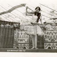 Real photo postcard, taken inside the sideshow or menagerie tent, rare image with MAY holding enorm…… Become a member to read more!