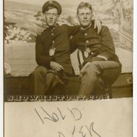 Absolutely terrific souvenir real photo postcard which documents two army buddies and their friends…… Become a member to read more!