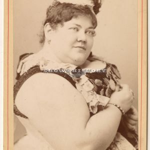 Fanny Mills “The Ohio Big Foot Girl” Compliments of Minor & Bradley, Waterbury, Conn.