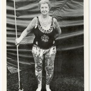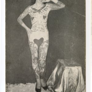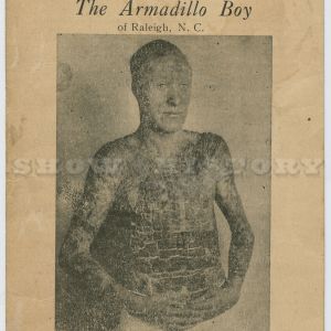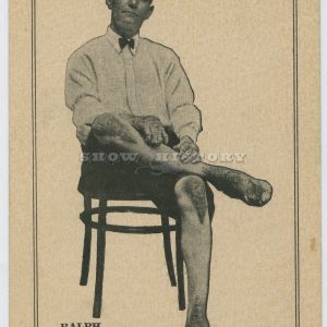 Pitchcards were sold– i.e. “pitched”– by the performer at the show as souvenirs. Most often sold by the performer him or herself from inside the tent, the cards were an added income from which the act split a percentage with the show operator. The design and creation of the cards fell to the show manager, but some performers took an active part in this process and constantly had new versions made after each season.