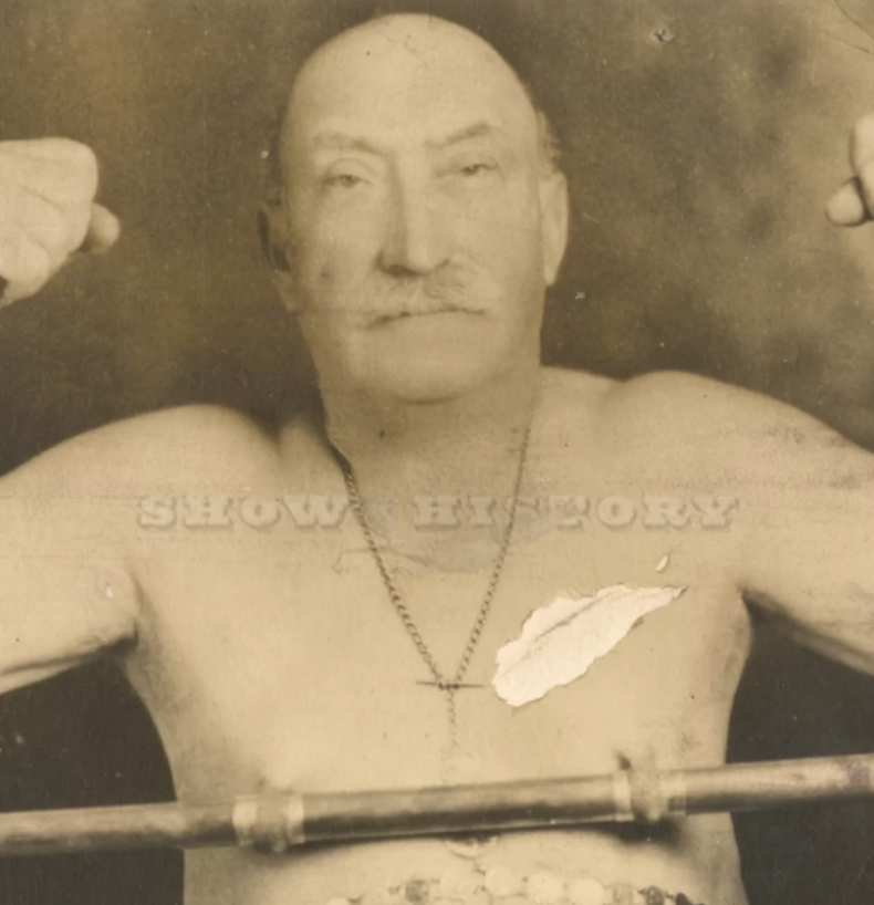 His true full name unknown, Captain Ringman Mach, a German strongman, born around 1875, was an extraordinary, ahead-of-his-time body-modder who had his nipples pierced and the holes enlarged in order to lift heavy weights and bend iron bars attached to the piercings in his chest.