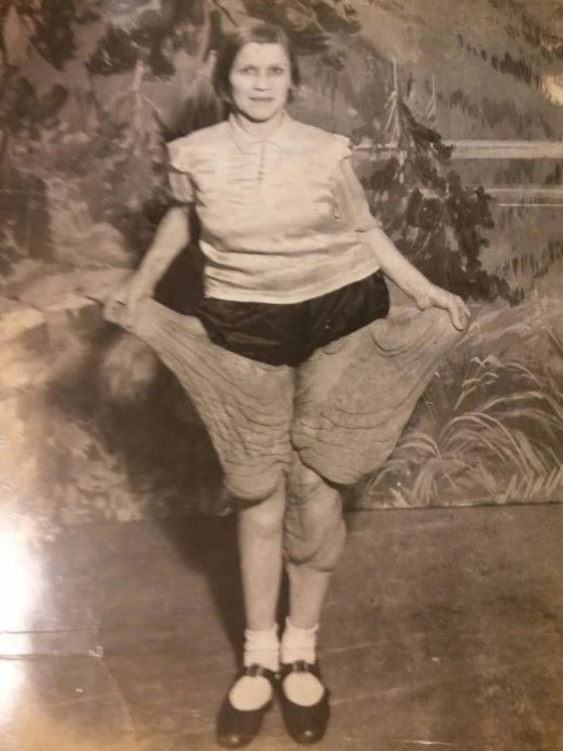 Agnes appeared as the “Rubber-Skinned Woman” in the 1930s. The skin on her thighs was……