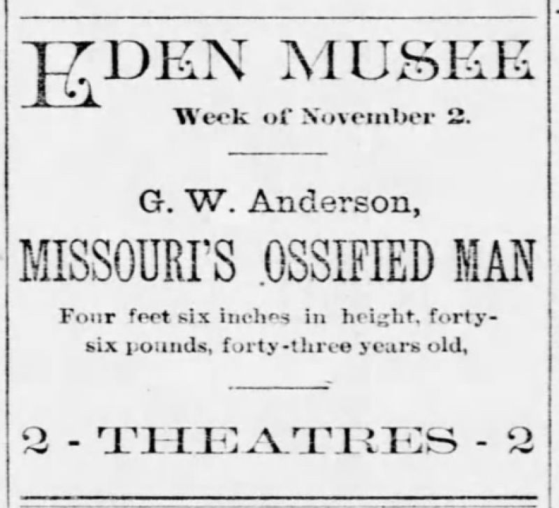 A little-known Ossified perfomer. “Born in Platte County, Missouri, November 15, 1848. Height……