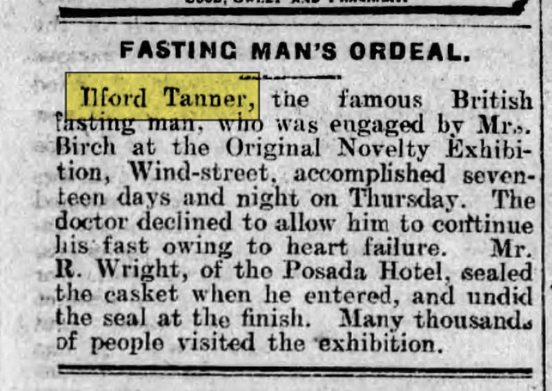 Tanner is known to have performed in England in 1912-14. He was sometimes sealed into a box, and……