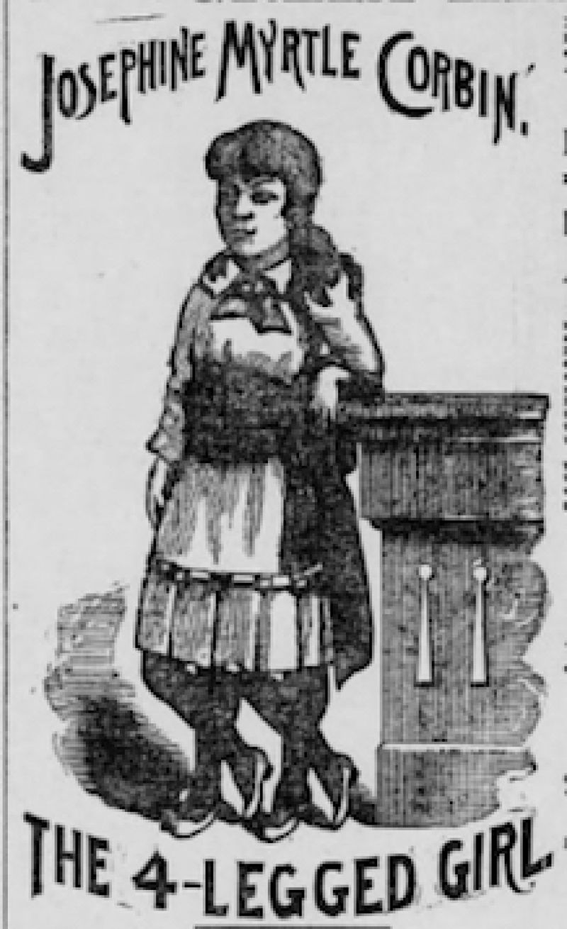 from Elizabeth Anderson: Josephine Myrtle Corbin, the Four-Legged Woman, was born in Lincoln……