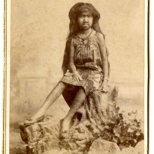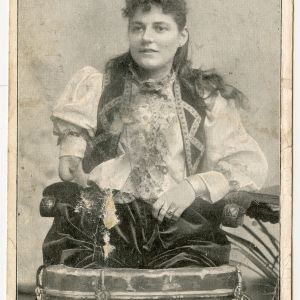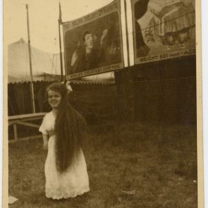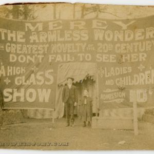 Fanny Mills “The Ohio Big Foot Girl” Compliments of Minor & Bradley, Waterbury, Conn.