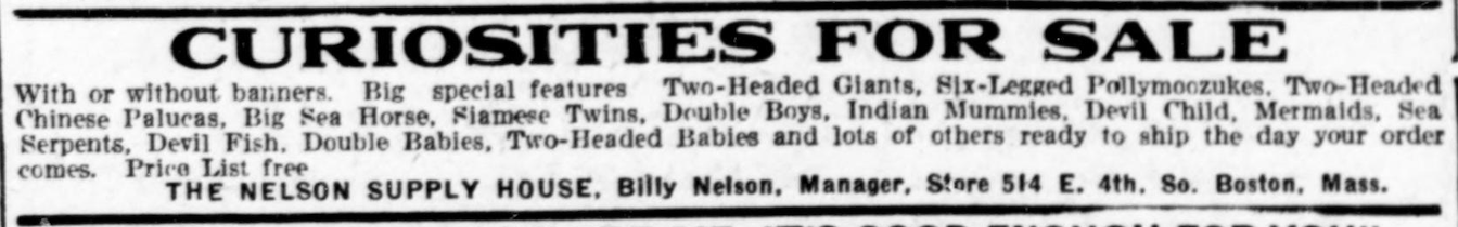 “Mummified Curiosities” The Nelson Supply House, The New Latest List No. 10 (16 Pages)